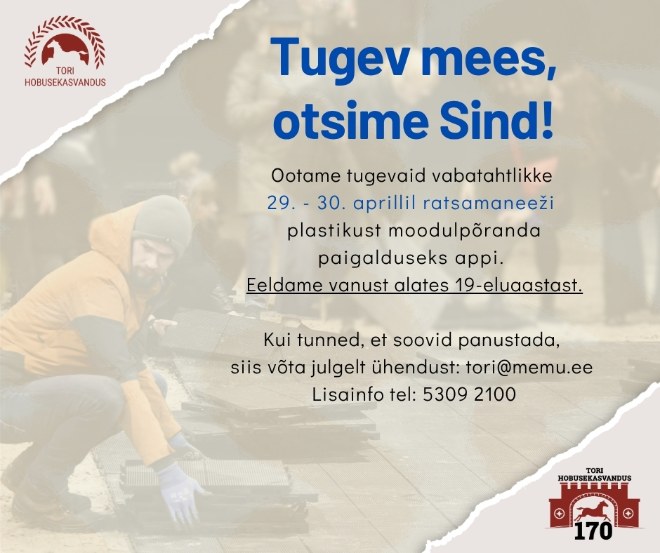 Ootame Tugevaid vabatahtlikke 29.-30. aprillil ratsamaneeži plastikust moodulpõranda paigalduseks appi.